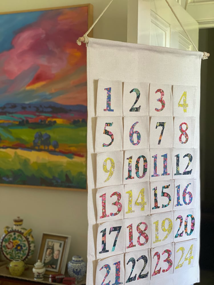This Advent Calender features numbers on each pocket in Liberty of London tana lawn and features some rare and vintage prints.